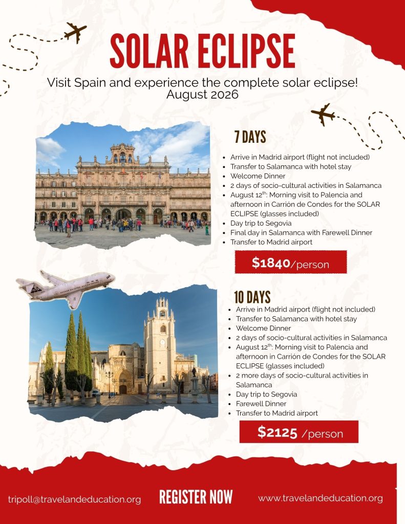Solar Eclipse Solar Eclipse Event: Spain, August 2026 Be the first to receive the registration link! Complete the form below to get on our VIP list and receive updates and more information on the trip! First Name Last Name Email Send